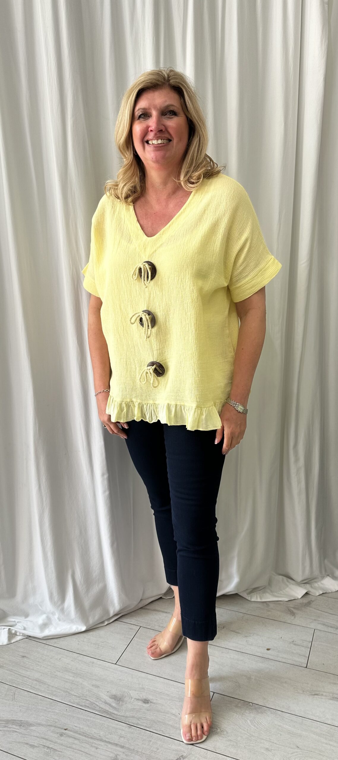 V neck cheesecloth top in Yellow