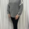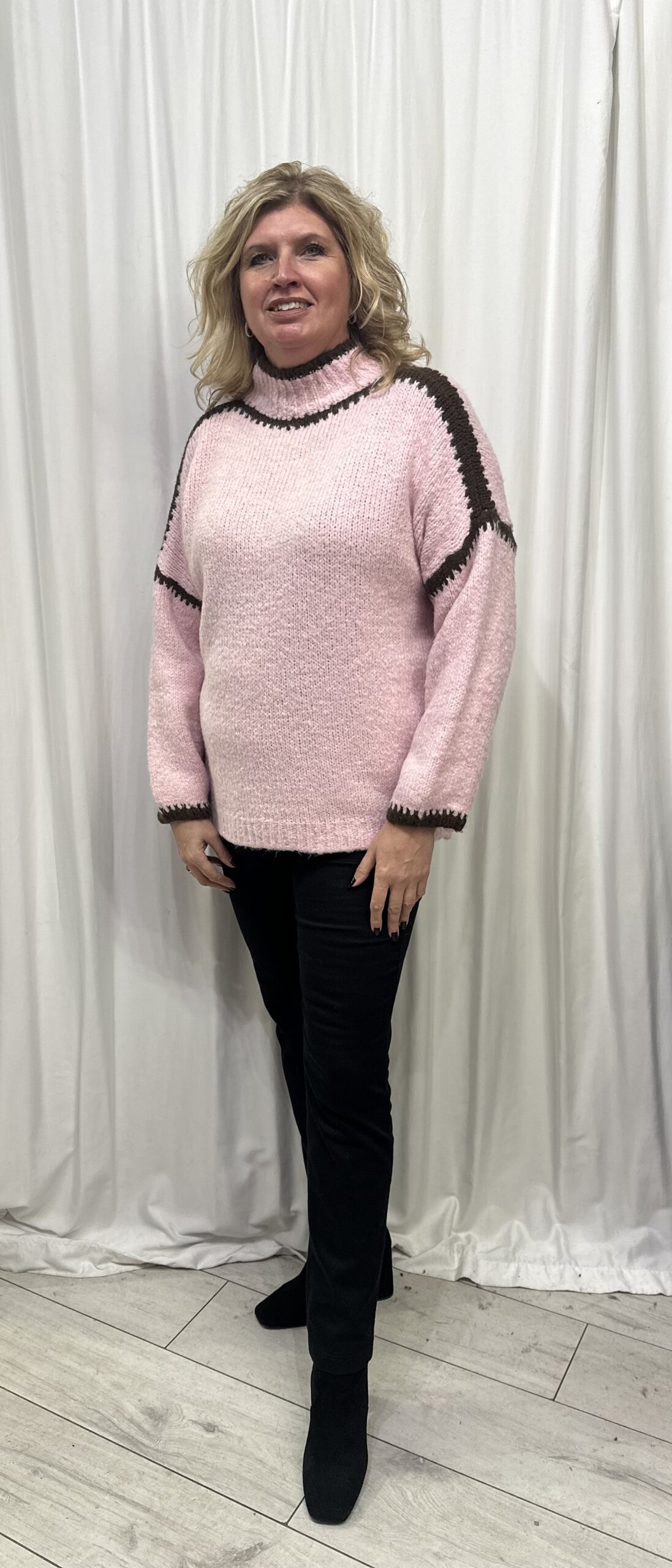Pale Pink chunky jumper with contrast coloured stitching in Brown from our Italian Collection