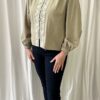 The buttons on the front & the cuffs are covered in the same fabric as the shirt