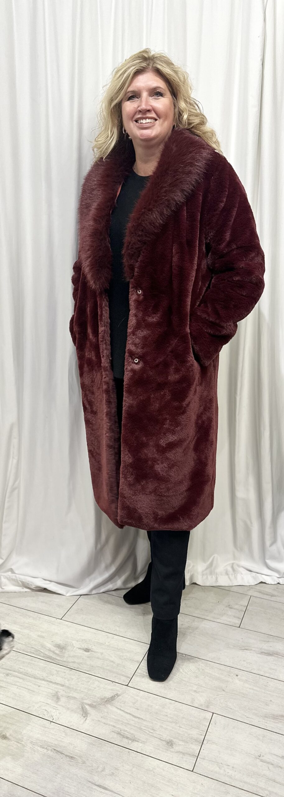 Berry faux fur long coat