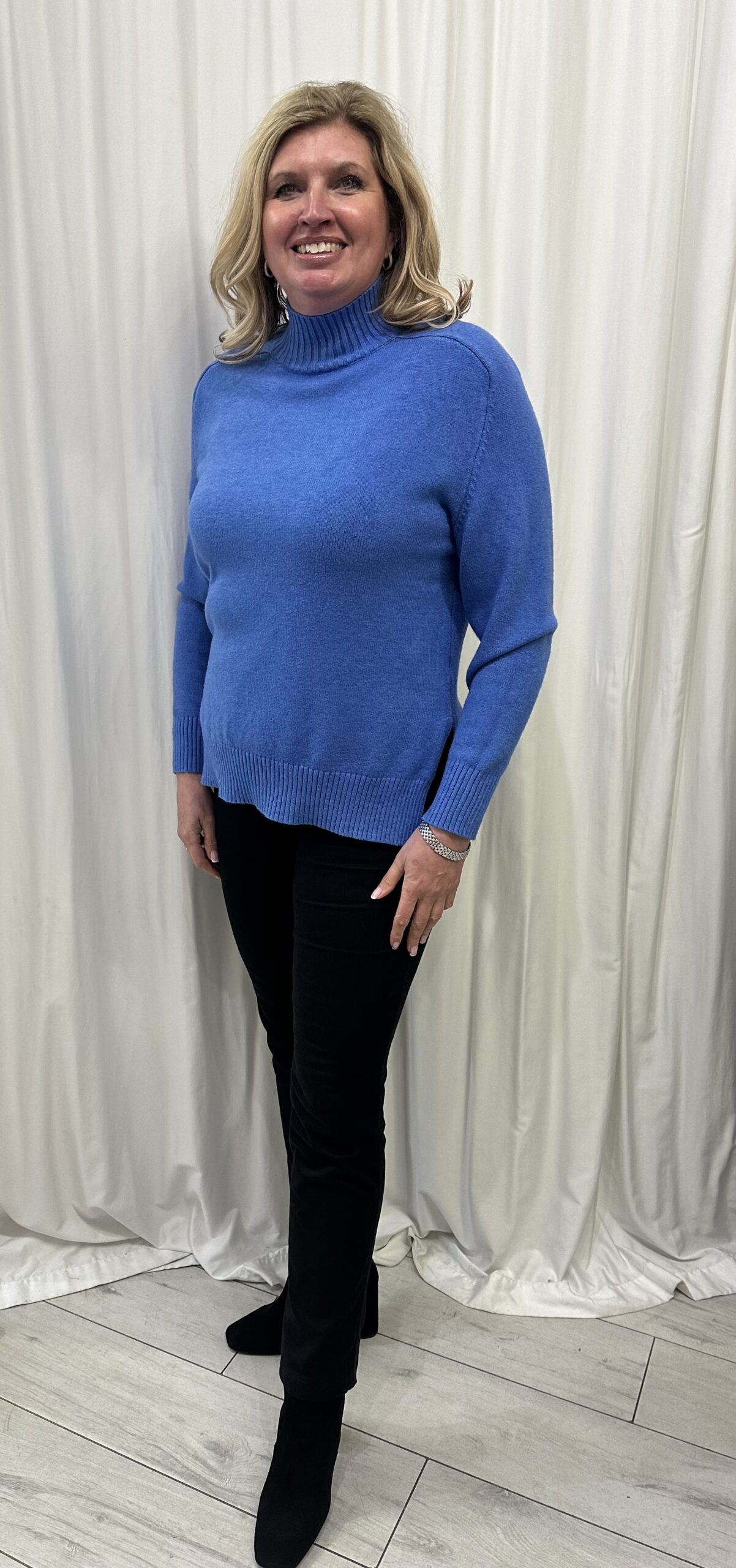 Ribbed turtle neck jumper in a beautiful Cornflower Blue