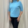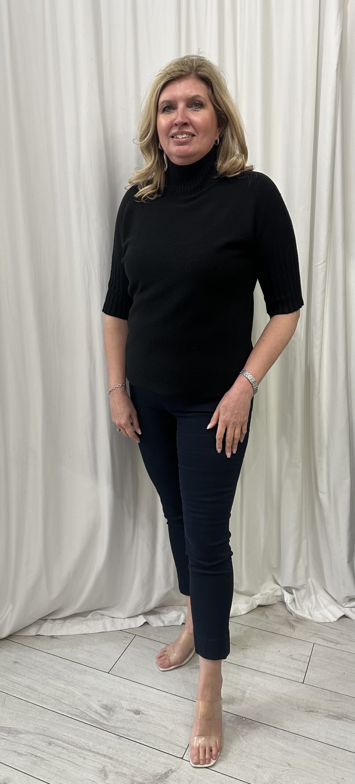 Ribbed Turtle Neck Short Jumper with 3/4 Ribbed Sleeves