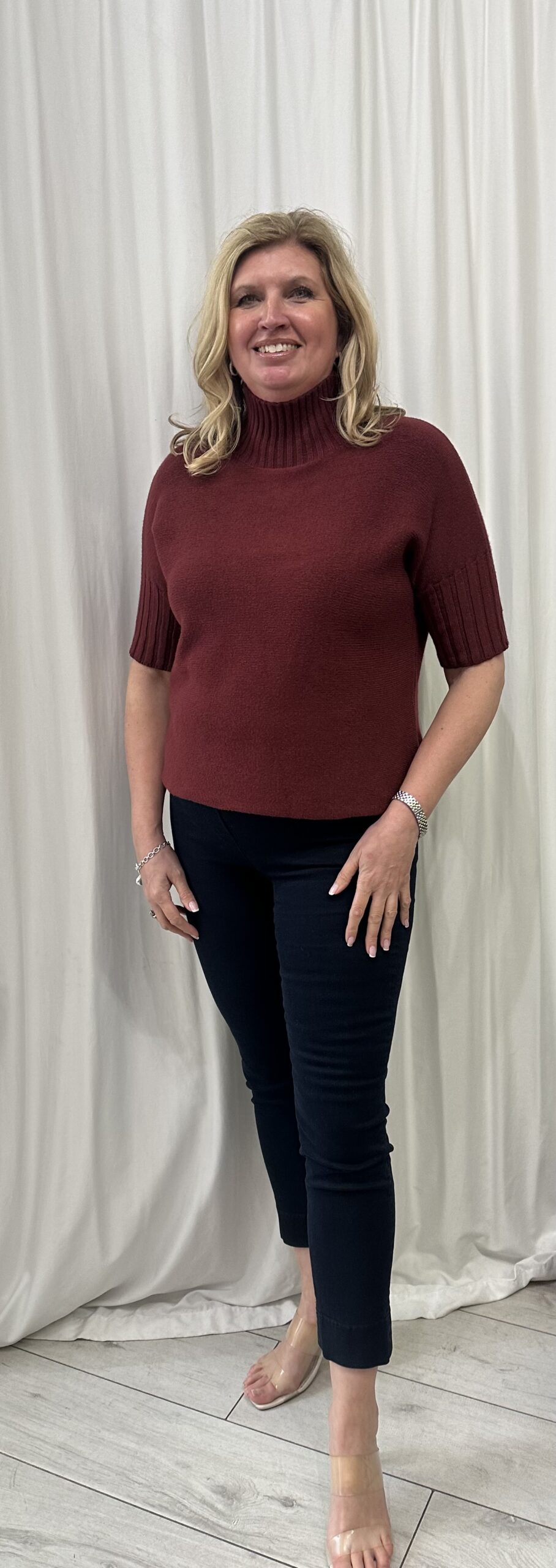 Ribbed Turtle Neck Short Jumper with 3/4 Ribbed Sleeves
